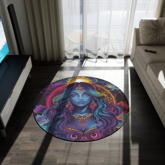 Cosmic Goddess Chenille Round Area Rug, Celestial Neon Design, Trippy Psychedelic Bedroom, Living and Meditation Space Decor