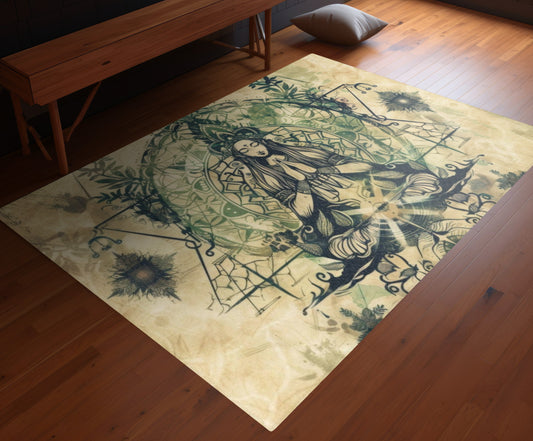Nature Goddess Polyester Chenille Area Rug (3 Sizes), Sacred Geometry Aesthetic, Zen Nature Bedroom, Living Room & Dorm Room Decor