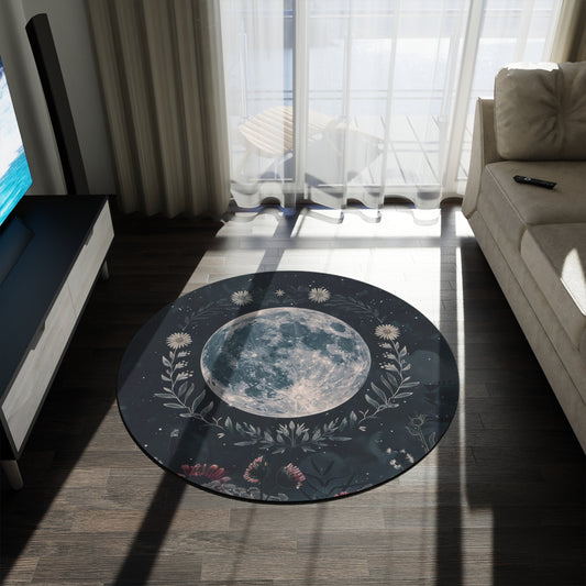 Full Moon & Wildflower Mandala Chenille Rug – Occult-Inspired Decor for Living Room, Bedroom, and Meditation Spaces