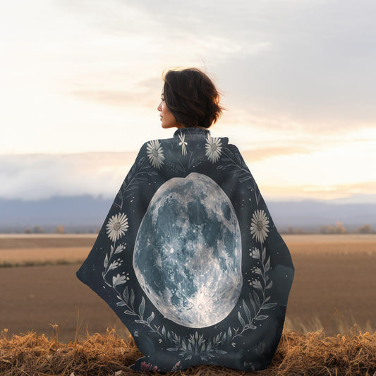 Full Moon & Wildflowers Double Sided Throw Blanket, Witchy Occult Design, Nature Lover Gift, Enchanting Aesthetic Bedroom and Living Room Decor