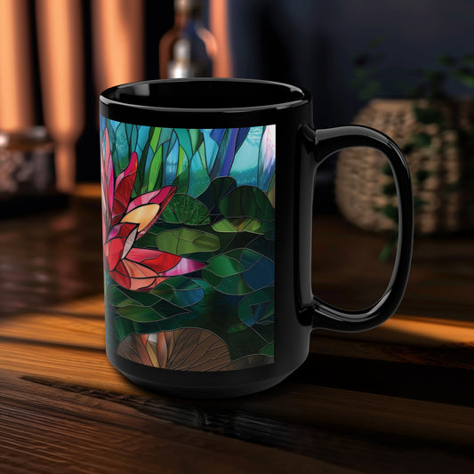 Vibrant Stained Glass Lotus 15oz Ceramic Mug, Floral Elegance, Serene Morning Coffee Companion, Inspiring Zen Beverage Experience