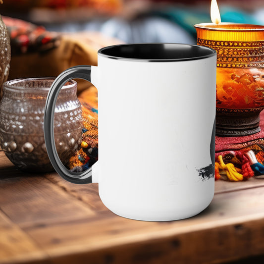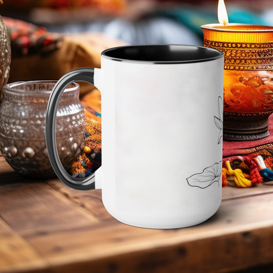 Zen Lotus 15oz Mug with Black Accents, Elegant Floral Line Art, Serene Two-Tone Cup for Tea and Coffee, Ideal for Mindful Mornings