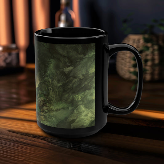 Danu's Enchanted Forest 15oz Black Ceramic Mug, Celtic Mother Goddess Essence, Verdant Woodland Serenity Sip