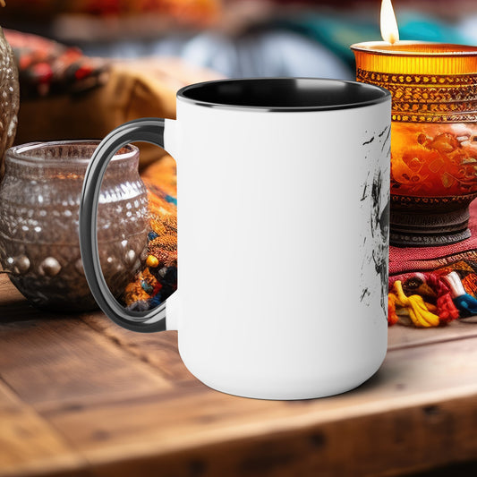 Gothic Skull 15oz Coffee Mug, Striking Two-Tone Design with Black Handle/Interior, Edgy Kitchenware, Perfect for Bold Espresso Lovers
