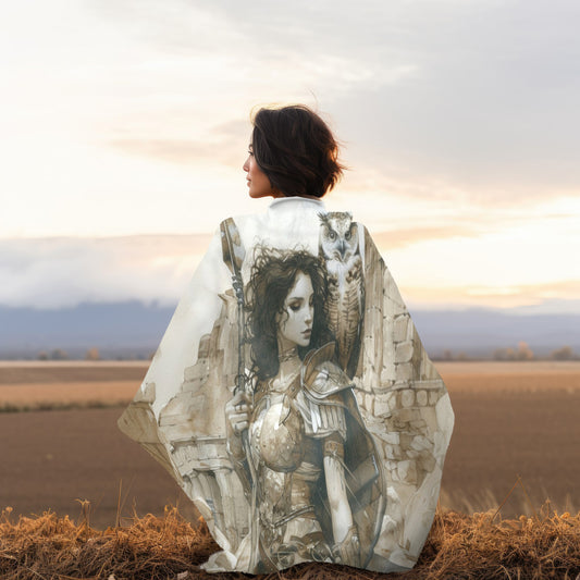 Athena's Wisdom Double-Sided Throw Blanket, Greek Warrior Goddess Emblem, Protective Owl, Heroic Home Comfort