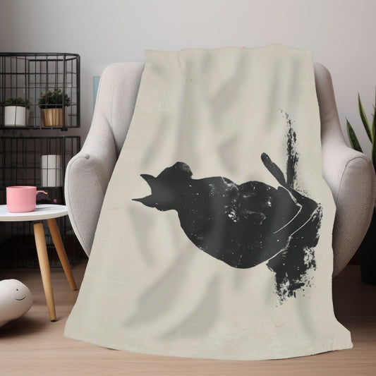 Silhouette Cat 2-Sided Throw Blanket, Modern Minimalist Feline Art, Chic Monochrome Pet Decor for Bedroom, Dorm Room, and Cozy Living Areas