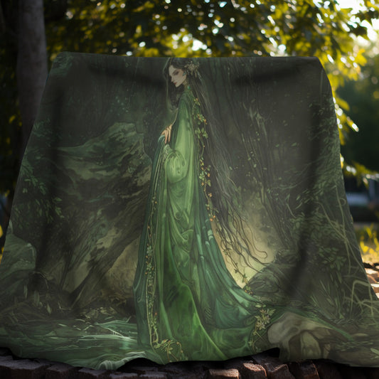 Danu's Enchanted Forest Double-Sided Throw Blanket, Celtic Mother Goddess Realm, Verdant Serenity, Luxurious Comfort