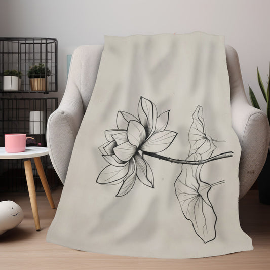 Lotus Flower Line Art Double Sided Throw Blanket, Elegant Botanical Illustration, Peaceful Zen Decor for Yoga Space, Bedroom, or Living Area
