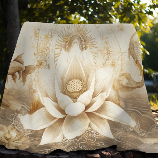 White Lotus Blossom Double Sided Throw Blanket, Ancient Occult Aesthetic, Zen Nature Style Living, Dorm & Bed Room Decor