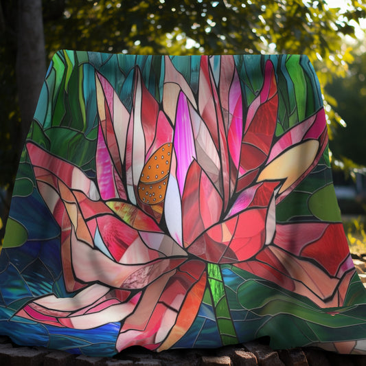 Stained Glass Lotus Blossom Double-Sided Throw Blanket, Vibrant Floral Comfort, Cozy Home Accent for Lounge & Relaxation Spaces