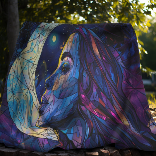 Moonlit Muse Stained Glass Double-Sided Throw Blanket, Lunar Goddess Illustration, Mystical Comfort for Nights & Cozy Spaces