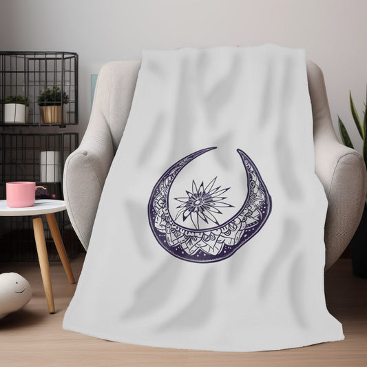 Mandala Crescent Moon 2-Sided Throw Blanket, Intricate Bohemian Design, Spiritual Zen Decor for Meditation Room, Bedroom, and Living Spaces