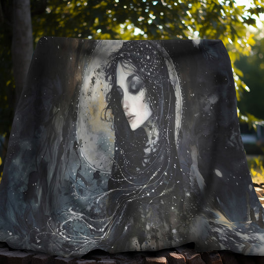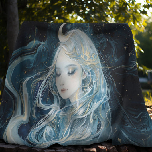 Selene's Moonlit Reverie Double-Sided Throw Blanket, Lunar Goddess Embrace, Celestial Elegance, Star-kissed Comfort