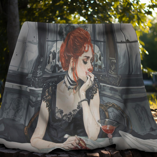 Persephone's Repose Double-Sided Throw Blanket, Pomegranate & Lace Elegance, Luxe Comfort, Artful Home Statement Piece
