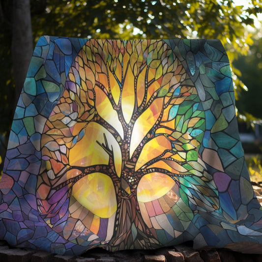 Tree of Life Stained Glass Double-Sided Throw Blanket, Vivid Nature Tapestry, Cozy Decorative Comfort for Home & Serene Retreat Spaces