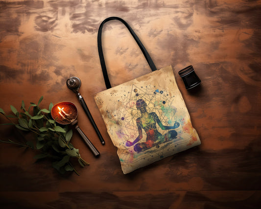 Air Goddess Polyester Tote Bag (Double Sided), Zen Nature Aesthetic, Sacred Geometry Style Fashion, 3 Sizes, Black Handles
